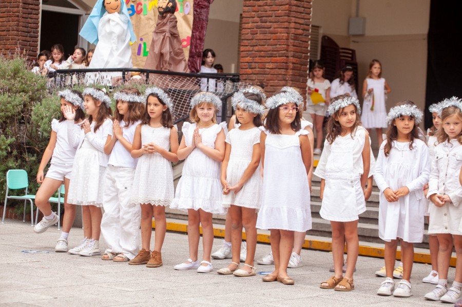 En el patio de la escuela apareció, una mañana de Adviento, un árbol muy especial. No tenía adornos todavía, solo sus ramas abiertas, como unos brazos que querían abrazarnos a todos. Cada grado se puso en camino para preparar el corazón para esta Navidad: estrellas, ángeles, campanas, corazones y luces fueron dando forma a un árbol que se llenó de fe, esperanza y amor, recordándonos que Jesús elige nacer en lo simple de cada día y en cada hogar.
