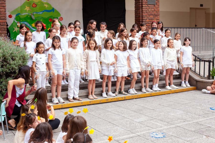 En el patio de la escuela apareció, una mañana de Adviento, un árbol muy especial. No tenía adornos todavía, solo sus ramas abiertas, como unos brazos que querían abrazarnos a todos. Cada grado se puso en camino para preparar el corazón para esta Navidad: estrellas, ángeles, campanas, corazones y luces fueron dando forma a un árbol que se llenó de fe, esperanza y amor, recordándonos que Jesús elige nacer en lo simple de cada día y en cada hogar.